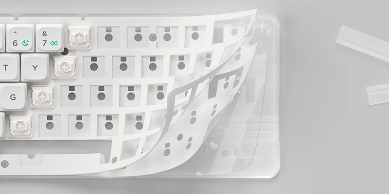 Bàn phím hỗ trợ hot-swap, kèm 4 switch dự phòng trong hộp, cho phép thay đổi nhanh chóng mà không cần hàn. Dòng NuPhy Switches như Moss tactile với hành trình 16.5mm và Cowberry linear pre-travel 1.2mm mang đến cảm giác gõ đa dạng; đồng thời, các switch Gateron Red, Blue, Brown cũng được nâng cấp với khuôn chính xác và pre-lube mượt mà. Hệ thống RGB backlight và sidelight với 40 chế độ, thanh LED bên trái hiển thị Caps Lock và chế độ kết nối, bên phải hiển thị pin và chế độ hệ thống, tạo hiệu ứng ánh sáng sống động, tùy biến qua VIA.