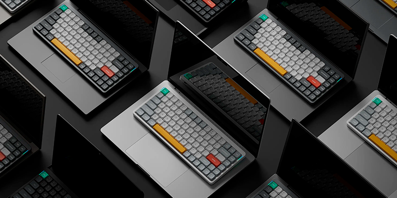 Bàn phím cơ không dây Nuphy Air75 V2 RGB Hotswap (Nuphy Sw). Với sự hỗ trợ của chân đế AirFeet cải tiến, chiếc bàn phím nhỏ gọn này có thể dễ dàng đặt lên trên bàn phím của hầu hết các mẫu laptop hiện nay. Dù kích thước khiêm tốn, Air75 V2 vẫn được thiết kế một cách tinh tế, chừa đủ không gian ở phía trên để bạn thoải mái sử dụng các tính năng đặc biệt của laptop như Touch ID, Touch Bar hay camera, không gây bất tiện trong quá trình làm việc. Nhờ vậy, bạn có thể tận hưởng cảm giác gõ phím chuyên nghiệp mọi lúc mọi nơi, mà không phải hy sinh sự tiện lợi của chiếc laptop. Danh sách laptop tương thích: