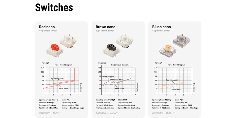Nano Switch với hành trình phím 3.5mm mang đến trải nghiệm gõ vượt xa giới hạn của bàn phím cơ truyền thống. Sự kết hợp hoàn hảo giữa âm thanh gõ êm ái, cảm giác nhấn chắc chắn nhưng nhẹ nhàng, hành trình sâu và thiết kế low-profile công thái học tạo nên một “dòng chảy cảm giác” độc đáo. Không chỉ giúp bạn tăng hiệu suất làm việc, mà còn mang lại niềm hứng khởi và sự hài lòng trong từng cú gõ – biến việc đánh máy hằng ngày thành một trải nghiệm đầy cảm xúc.