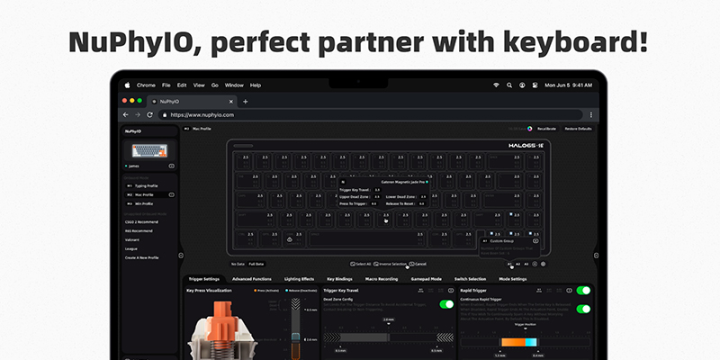 NuPhyIO mang đến trải nghiệm tùy chỉnh siêu đơn giản, hoàn hảo cho những ai yêu thích cá nhân hóa bàn phím. Với sự kết hợp giữa trợ lý web NuPhy IO và phần cứng thông minh như nút xoay (knob) cùng công tắc chuyển đổi (toggle switch), người dùng có thể chuyển đổi hệ điều hành mượt mà, thiết lập phím tắt theo ý muốn và thỏa sức bùng nổ sáng tạo. Nút xoay cho phép phóng to, thu nhỏ hình ảnh trên Photoshop một cách chính xác, mang lại sự kiểm soát tinh tế và cải thiện hiệu suất làm việc. Với lập trình viên, NuPhyIO hỗ trợ remap phím linh hoạt, ví dụ thay phím · thành phím ESC để thực hiện lệnh “Deselect All”, giúp tiết kiệm thao tác và nâng cao tốc độ coding. Còn với game thủ, tính năng ghi macro mang lại lợi thế vượt trội: chỉ cần một lần nhấn, toàn bộ chuỗi hành động phức tạp được tái hiện ngay lập tức, giúp bạn dẫn trước đối thủ và tận hưởng trải nghiệm chơi game đỉnh cao.