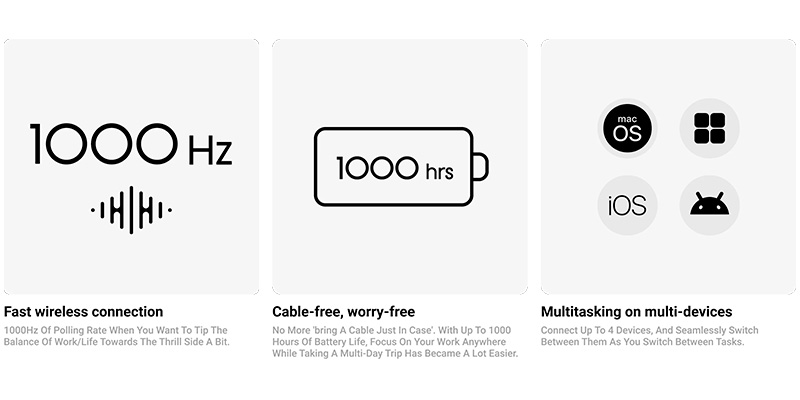 Tiếp nối truyền thống về khả năng kết nối vượt trội đã làm nên tên tuổi của NuPhy, phiên bản Node75 sở hữu những năng lực không dây thiết yếu và xuất sắc nhất (outstanding essential wireless capabilities). Là một bàn phím High Profile, thiết bị không chỉ mỏng nhẹ mà còn đảm bảo kết nối ổn định, độ trễ thấp, đáp ứng tốt nhu cầu của cả game thủ lẫn người làm việc văn phòng. Khả năng chuyển đổi linh hoạt giữa các thiết bị và các chế độ kết nối giúp bạn duy trì luồng công việc liền mạch, không bị gián đoạn bởi dây cáp rườm rà. Sự tự do mà kết nối không dây mang lại, kết hợp với thời lượng pin được tối ưu hóa, giúp Node75 trở thành trung tâm điều khiển đáng tin cậy cho mọi thiết lập bàn làm việc, từ tối giản (minimalist) đến chuyên nghiệp.