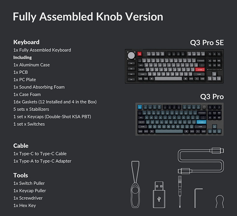 Bàn phím cơ không dây TKL Keychron Q3 Pro Carbon Black SE RGB Knob Hotswap