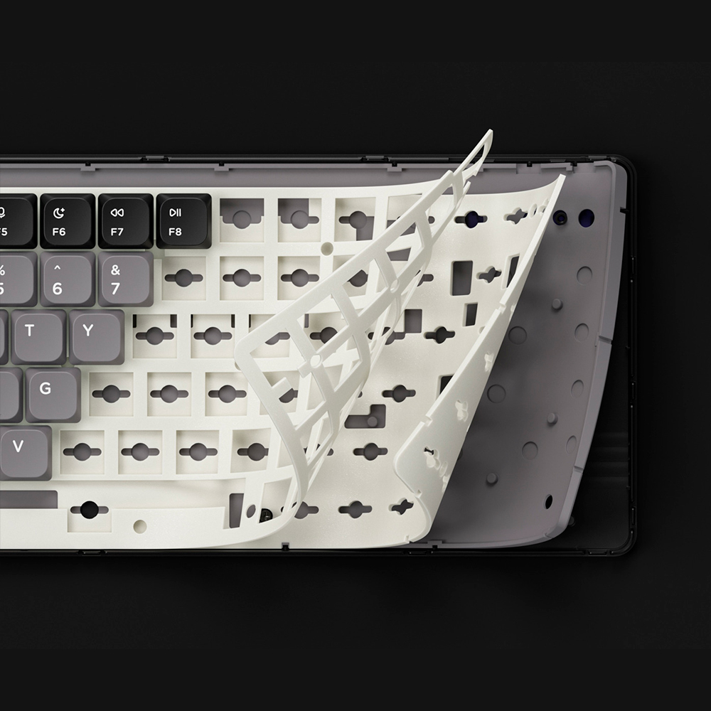Khi thiết kế bàn phím low-profile đầu tiên sử dụng switch từ tính, chúng tôi đặt độ chính xác hành trình phím lên hàng đầu. Điều này đồng nghĩa với việc loại bỏ một số cấu trúc phổ biến như gasket mount, plate PC/POM, miếng giảm âm hay switch pad. Với các lựa chọn bị thu hẹp đáng kể, chúng tôi đã tích hợp bọt PCB, bọt plate và silicon đáy để đảm bảo âm thanh gõ phím trong trẻo và sạch sẽ, mang đến trải nghiệm thính giác khác biệt.