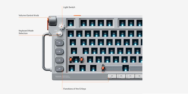 Các switch từ tính vốn đã ấn tượng, nhưng những nút bấm cổ điển và núm xoay kim loại cũng không hề “ngồi chơi”. Giờ đây, chúng được tích hợp hoàn toàn với hệ thống layer, cho phép thiết lập đến 4 chức năng cho mỗi chế độ trên từng nút bấm. Ngoài ra, những cải tiến độc đáo khác bao gồm công tắc bánh răng 2D điều chỉnh hiệu ứng/độ sáng ánh sáng, cùng các tính năng đặc biệt dành riêng cho HE như chỉ báo kích hoạt phím.