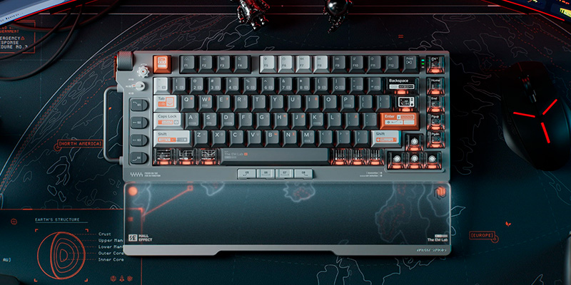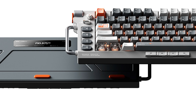 Tốc độ chớp nhoáng mà Field75 HE mang lại đã dịch chuyển trọng tâm thiết kế từ các nút bấm và bánh xe sang những yếu tố thị giác hỗ trợ định vị, tạo điểm nhấn và tăng trải nghiệm thị giác mà không gây gián đoạn thao tác. Nổi bật trong đó là bộ keycap EM Lab được thiết kế riêng cho Field75 HE, với phối màu tương phản cao lấy cảm hứng từ đồng hồ đo điện (multimeter) và tricorder cổ điển, vừa độc đáo vừa mang đậm dấu ấn công nghệ.