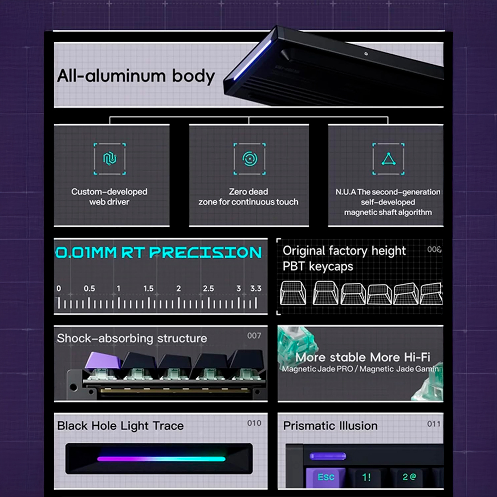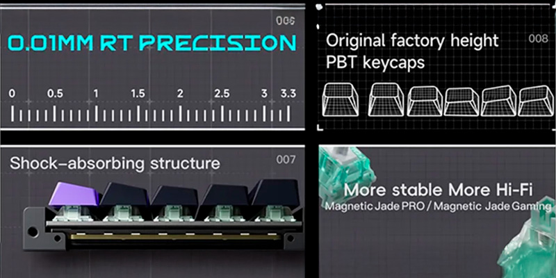 Trung tâm của trải nghiệm chính là High-Profile Magnetic Switches – switch từ tính cao cấp với độ nhạy cực cao, cho phép người dùng tùy chỉnh điểm kích hoạt chính xác tới 0.01mm. Công nghệ Rapid Trigger giúp phím có thể reset ngay khi người dùng nhấc tay lên nhẹ, mang lại độ phản hồi siêu nhanh, đặc biệt hữu dụng trong các tựa game FPS yêu cầu thao tác liên tục. Kết hợp cùng cơ chế N-key rollover không giới hạn, trải nghiệm chơi game và làm việc trở nên mượt mà, chính xác và hiệu quả hơn bao giờ hết.