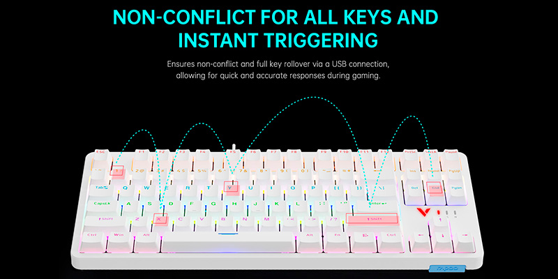 Bàn phím cơ Rapoo V500 Pro-87 2024 Multi Led (Rapoo Sw) được trang bị công nghệ chống xung đột N-key rollover, đảm bảo mọi lệnh nhấn phím đều được ghi nhận chính xác, ngay cả khi bạn nhấn nhiều phím cùng lúc. Tính năng này đặc biệt quan trọng trong các tình huống chơi game đòi hỏi tốc độ và độ chính xác cao. Ngoài ra, bàn phím còn có các phím đa phương tiện cho phép bạn điều khiển nhanh chóng các chức năng như âm lượng, phát/tạm dừng nhạc, mà không cần phải rời khỏi ứng dụng đang sử dụng.