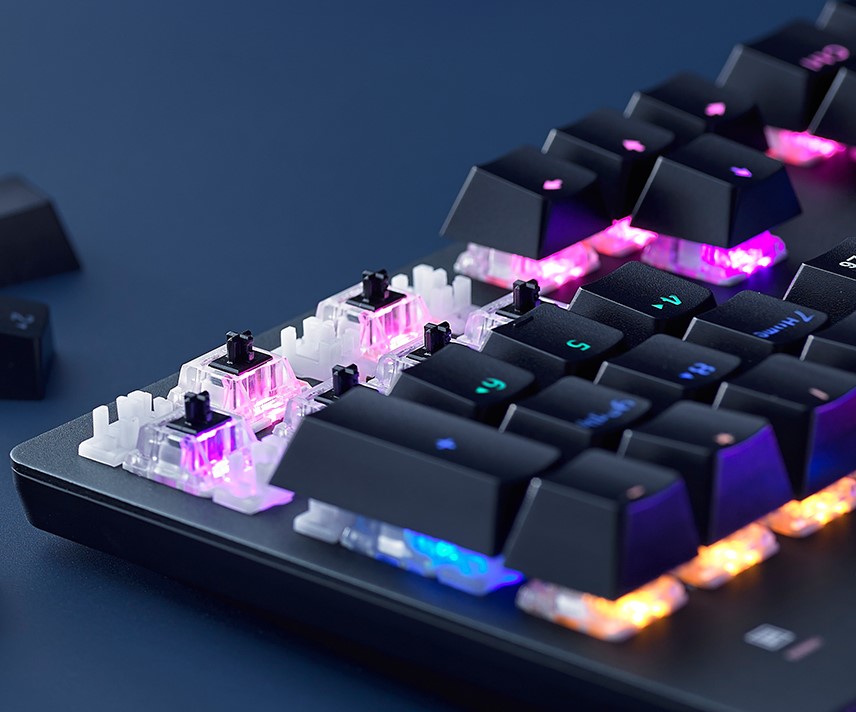 Keycap Double-Shot Trang bị Keycap double shot với các kí tự được đổ khuôn và đúc bằng nhựa màu giúp các kí tự không bị phai màu theo thời gian. |
