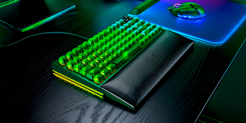 BlackWidow V4 75% được trang bị kê tay từ tính bọc da mềm mại, hỗ trợ cổ tay trong các phiên chơi game dài mà không bị mỏi. Bên cạnh đó, cáp kết nối USB-C có thể tháo rời giúp di chuyển và cất giữ dễ dàng. Tốc độ polling rate lên tới 8000Hz, hỗ trợ N-Key Rollover và anti-ghosting, đảm bảo mọi cú nhấn đều được ghi nhận chính xác, kể cả trong các tình huống cần phản xạ nhanh trong game.