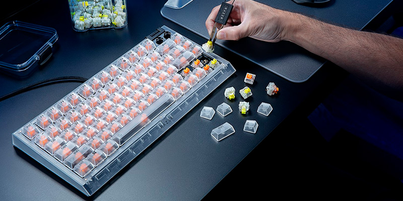 Điểm nổi bật đáng chú ý nhất chính là khả năng hot-swap, cho phép người dùng dễ dàng tháo và thay thế switch mà không cần hàn. Tương thích với cả switch 3 chân và 5 chân, bàn phím hỗ trợ tối đa game thủ cá nhân hóa trải nghiệm gõ phím với loại switch yêu thích. Bản gốc đi kèm Razer Orange Switch Gen-3, dạng tactile và yên tĩnh, phù hợp cho cả chơi game và làm việc trong môi trường yên tĩnh.