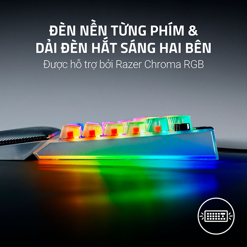 Hiệu ứng RGB Razer Chroma™ tỏa sáng – Led từng phím và viền hắt sáng hai bên