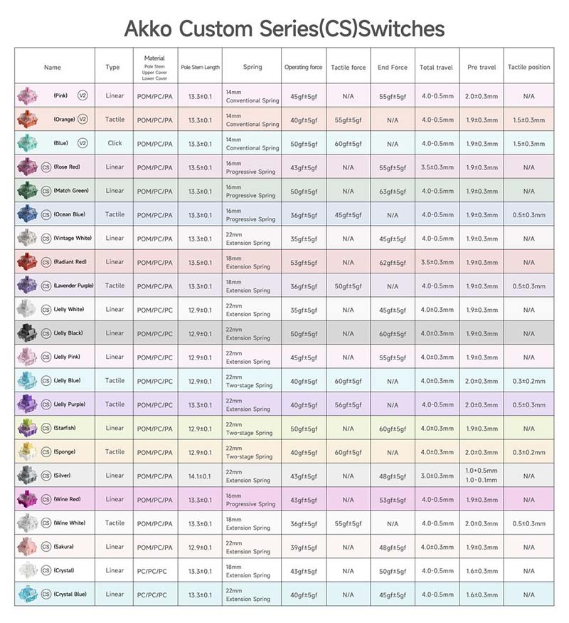 Bàn phím cơ TKL AKKO 5087 RGB ASA Akko CS Switch Bàn phím cơ AKKO 5087 RGB ASA sử dụng Switch Akko CS Jelly trang bị lò xo mở rộng có lực bấm nhẹ và hành trình phím ngắn mang lại cảm giác gõ hài lòng hơn với các đặc điểm riêng biệt và cho người dùng cảm giác mượt mà và trơn tru. |