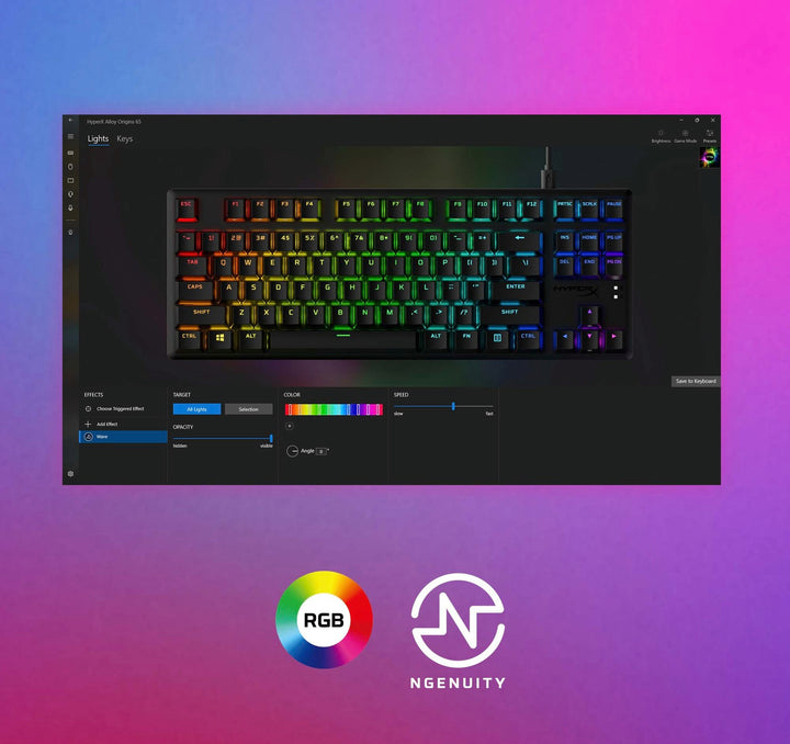 Phần mềm HyperX NGENUITY Tùy biến với Game mode, tùy chỉnh hiệu ứng ánh sáng, và thiết lập macro của riêng bạn. |