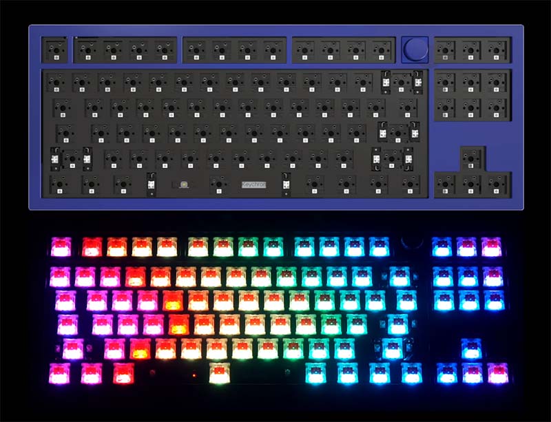Đèn LED South-facing RGB Bàn phím cơ TKL Keychron Q3 Full Assembled Knob với thiết kế South Facing giúp việc hiển thị Led tốt hơn khi dùng kết hợp cùng keycap không xuyên Led. |