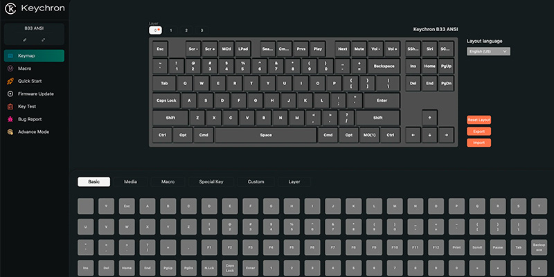 Người dùng có thể cá nhân hóa bàn phím thông qua Keychron Launcher web app mà không cần cài đặt phần mềm. Trình cấu hình trực tuyến này cho phép remap phím, thiết lập macro, phím tắt và nhiều tùy chỉnh nâng cao, hoạt động trên Windows, macOS, Linux với các trình duyệt Chrome, Edge và Opera. Với tính năng này, việc quản lý và cá nhân hóa bàn phím trở nên tiện lợi và trực quan hơn bao giờ hết.
