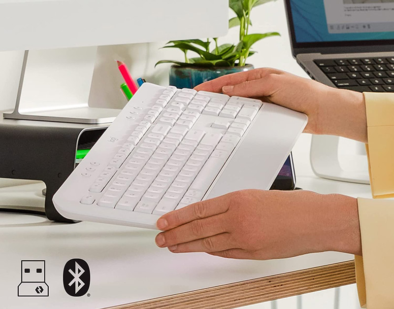 Kết nối không dây nhanh chóng K650 Signature với 2 lựa chọn kết nối với thiết bị của bạn nhanh chóng, nhờ kết nối không dây qua Bluetooth Low Energy hay đầu thu USB Logi Bolt đi kèm. Sở hữu kết nối không dây mạnh mẽ trong phạm vi lên đến 10 m cho phép bạn linh hoạt về nơi làm việc trong khi giữ cho mặt bàn gọn gàng và không vướng dây. |