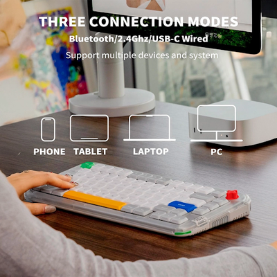 Kick75 tương thích với Windows (7+), macOS (10.10+), Linux, iOS và Android qua USB-C, Bluetooth 5.1 hoặc 2.4GHz. Phần mềm NuPhyIO và công tắc chuyển đổi Mac/Windows giúp bạn tùy chỉnh phím dễ dàng, đáp ứng mọi nhu cầu.