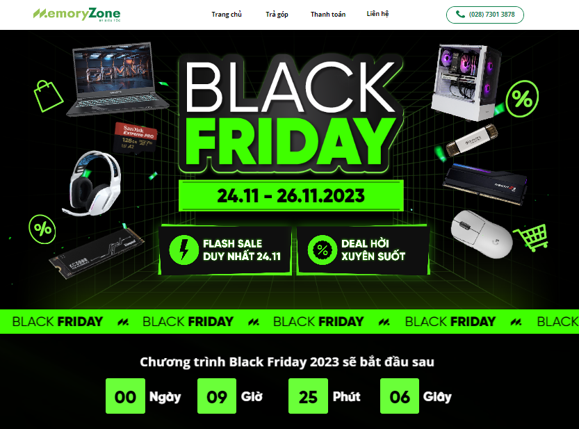 Xuyên suốt 3 ngày diễn ra Black Friday, Memoryzone giảm giá các sản phẩm lên đến 50% của 4 ngành hàng Laptop, Linh kiện, Lưu trữ, PC