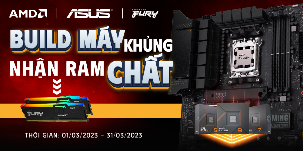Khi khách hàng build PC sử dụng Combo CPU AMD Ryzen™ 7000 và Mainboard Asus sẽ nhận được quà tặng là Ram Kingston tùy theo dòng CPU và Ma...