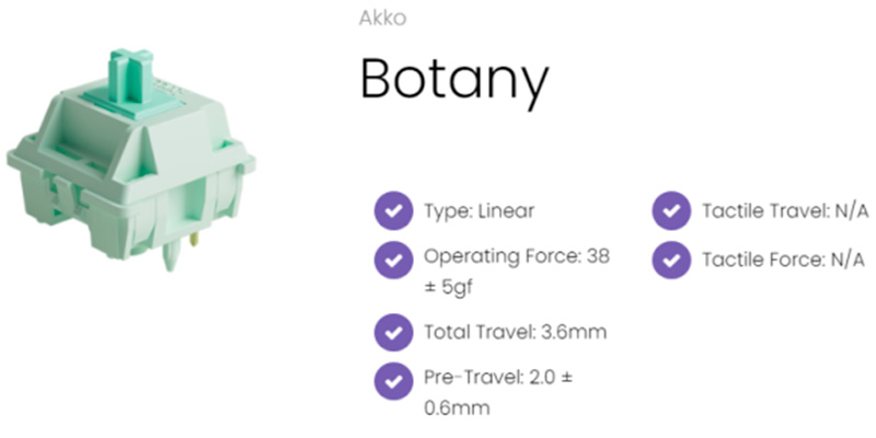 Bạn đang quan tâm đến Bộ 45 switch cơ Akko Botany Switch 38 ± 5gf 5 Pin (Linear Sw)? Đang còn đang băn khoăn chưa biết có nên mua sản phẩm hay không? Liên hệ MemoryZone ngay để được tư vấn chi tiết!