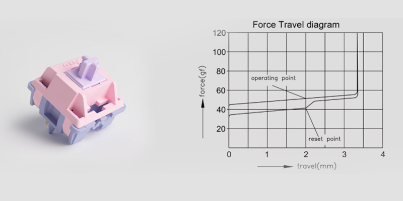 Akko Fairy Switch Silent sở hữu hành trình phím tổng cộng 3.3mm, mang lại cảm giác gõ phím tự nhiên và thoải mái. Hành trình trước 2.0mm ± 0.5mm giúp phản hồi nhanh chóng, đáp ứng kịp thời các thao tác của người dùng trong cả công việc và giải trí. Thiết kế này đảm bảo hiệu suất cao, đồng thời giảm thiểu mệt mỏi khi sử dụng trong thời gian dài.