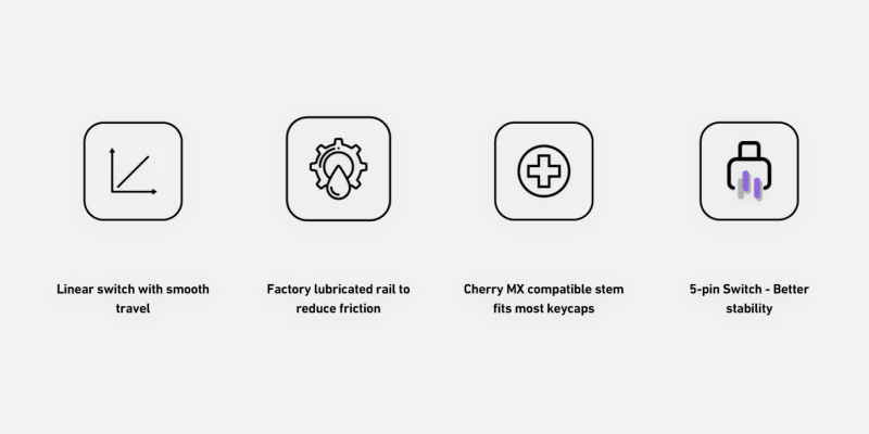 Với tổng hành trình phím 4.0mm và hành trình kích hoạt 2.0±0.5mm, Akko Rosewood Switch cho phép phản hồi nhanh chóng trong từng thao tác. Thiết kế này giúp người dùng thực hiện các lệnh một cách nhanh nhạy, đáp ứng tốt nhu cầu chơi game và làm việc.