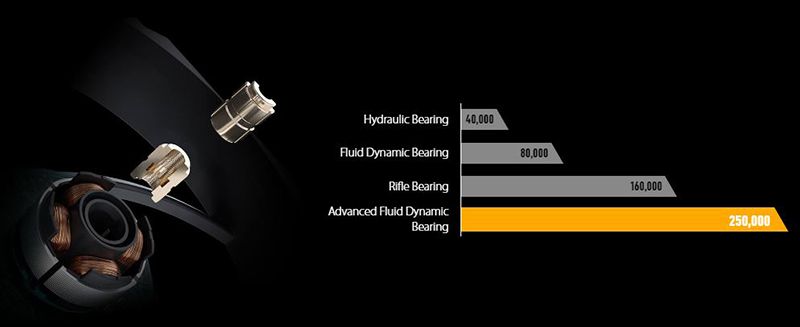 Fluid Dynamic Bearing Bộ ba Fan Case Asus TUF Gaming TF120 ARGB 120mm Black tổ hợp ổ trục quay Fluid Dynamic đạt hiệu suất định mức lên đến 250,000 giờ giúp máy bạn hoạt động mượt mà trong thời gian dài. |