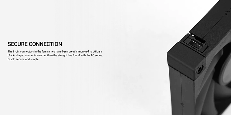 Toàn bộ quạt và phụ kiện đều được phủ tone đen đồng bộ, dễ dàng phối hợp với hầu hết cấu hình gaming và workstation chuyên nghiệp. Cánh quạt làm từ chất liệu polycarbonate trong suốt, kết hợp với khung PBT bền bỉ, giúp giảm rung và hạn chế hao mòn sau thời gian dài sử dụng, duy trì vẻ ngoài tinh tế và hiệu năng ổn định.