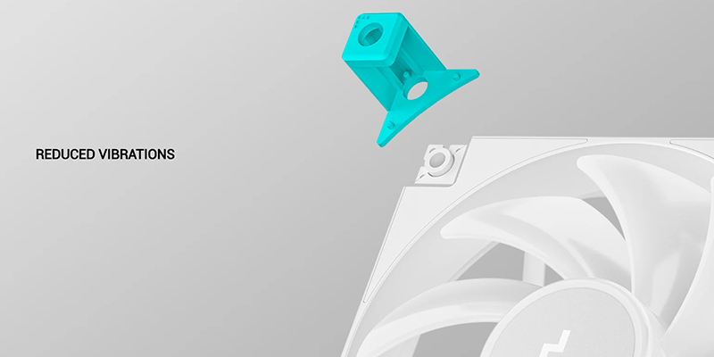 Các góc quạt đều được trang bị đệm cao su chống rung toàn diện, giúp giảm thiểu tiếng ồn khi hoạt động và hạn chế rung lắc do áp lực lắp đặt không đều. Độ ồn tối đa của quạt chỉ ở mức ≤27.6 dB(A), đủ yên tĩnh cho môi trường làm việc chuyên nghiệp, chơi game hoặc sáng tạo nội dung cần không gian tĩnh lặng.