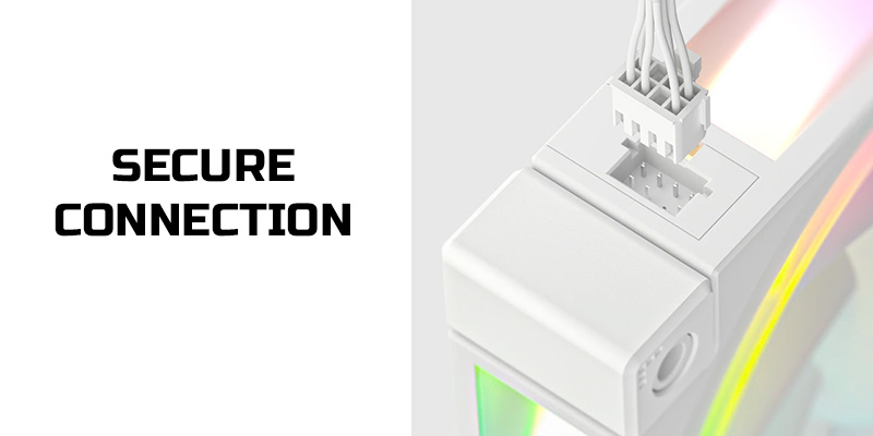 Mỗi quạt được trang bị cổng kết nối 8-pin tích hợp PWM và ARGB SYNC, giúp người dùng dễ dàng đồng bộ điều khiển tốc độ và hiệu ứng ánh sáng chỉ qua một dây nối duy nhất. Thiết kế này không chỉ giảm rối dây, mà còn đảm bảo an toàn khi lắp đặt. FL12 ARGB-3 IN 1 White R-FL12-WHAPN3-G còn hỗ trợ điện áp định mức 12VDC và điện năng tiêu thụ chỉ 1.8W, mang lại khả năng tiết kiệm điện tối ưu mà vẫn duy trì hiệu suất làm mát vượt trội.