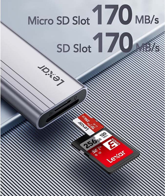 Hỗ trợ đọc thẻ nhớ Bộ chia USB Type-C 7-in-1 Lexar H31 LPAH31N-RNHNG được trang bị cổng đọc SD và MicroSD để bạn có thể nhanh truyền tải dữ liệu từ điện thoại, Flycam, Gopro, máy ảnh DSLR... một cách liền mạch với tốc độ cao lên đến 170MB/s. |