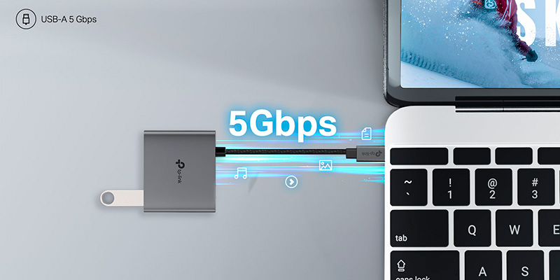 TP-Link UH3020C được trang bị 3 cổng USB-A 3.0, hỗ trợ tốc độ truyền ữ liệu lên đến 5Gbps, nhanh gấp 10 lần so với USB 2.0. Điều này giúp bạn sao chép tệp tin dung lượng lớn trong tích tắc, đảm bảo hiệu suất làm việc và giải trí luôn ổn định.