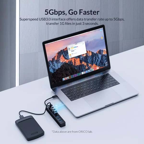 |  | Tốc độ cao Bộ chia USB Type-C ra 7 cổng USB Type-A Orico TWC3-7A-BK với chuẩn giao tiếp USB 3.0 sẽ cho băng thông cực lớn lên đến 5Gbps, giúp bạn chuyển dữ liệu cực nhanh và tiết kiệm nhiều thời gian hươn. |