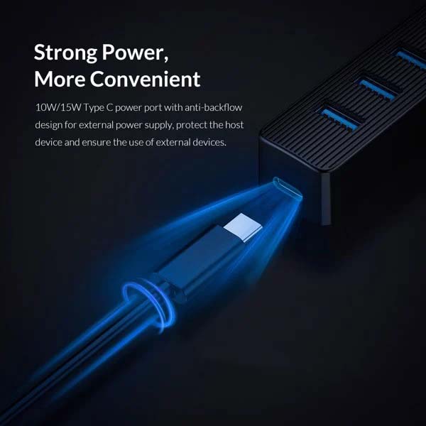 | Hỗ trợ nguồn phụ Bộ chia USB Type-C ra 7 cổng USB Type-A Orico TWC3-7A-BK hỗ trợ nguồn phụ cổng USB Type-C để đảm bảo cung cấp độ ổn định cho tất cả các thiết bị khi được cắm cùng một lúc. |  |