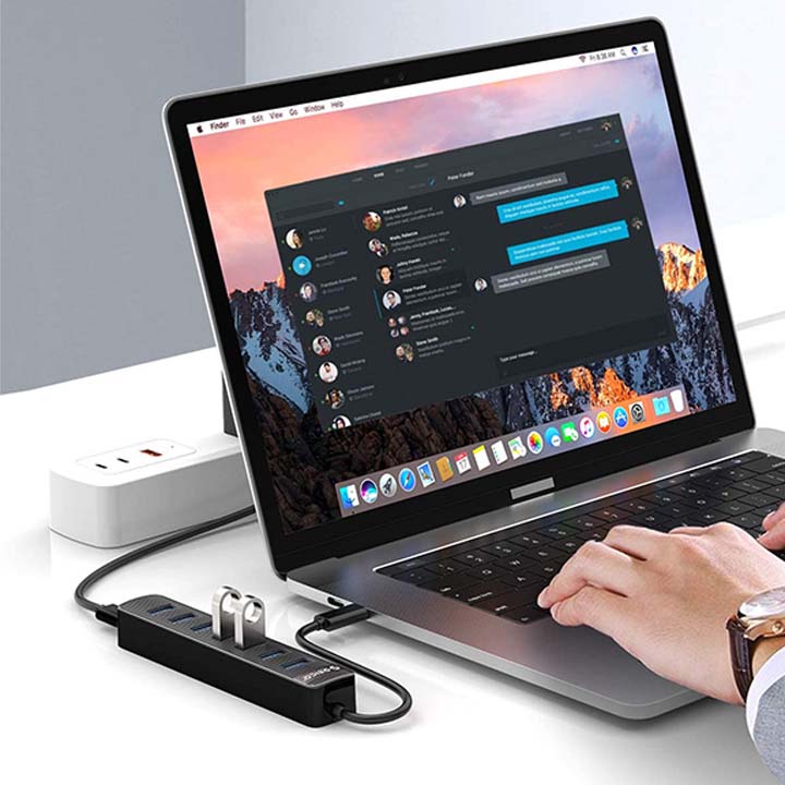 | Cực kỳ nhỏ gọn Bộ chia USB Type-C ra 7 cổng USB Type-A Orico TWC3-7A-BK với thiết kế cực kỳ nhỏ gọn sẽ giúp bàn làm việc của bạn gọn gàng và không thiếu phần sang trọng. |  |
