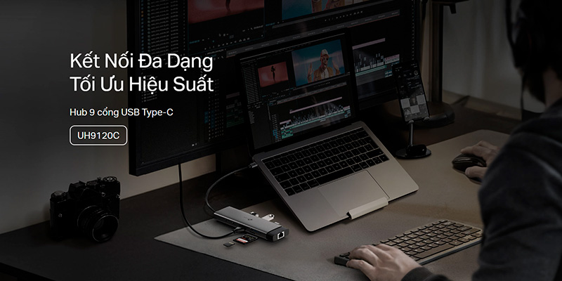 Bộ chia USB Type-C ra 9 cổng TP-Link UH9120C là giải pháp hoàn hảo cho việc mở rộng kết nối của bạn. Với thiết kế nhỏ gọn nhưng mạnh mẽ, thiết bị này biến một cổng USB-C duy nhất thành 9 cổng đa chức năng, bao gồm HDMI 4K@60Hz, Ethernet 1 Gbps, khe đọc thẻ SD và microSD UHS-I, sạc nhanh 100W, cùng với 1 cổng dữ liệu USB-C và 3 cổng dữ liệu USB-A. Điều này giúp bạn dễ dàng kết nối với nhiều thiết bị ngoại vi khác nhau, đáp ứng mọi nhu cầu công việc và giải trí.