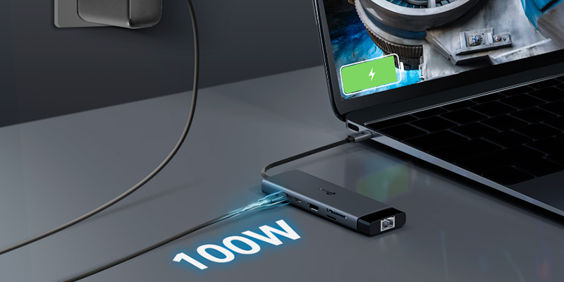 TP-Link UH9120C hỗ trợ công nghệ sạc nhanh Power Delivery lên đến 100W thông qua cổng USB-C PD. Điều này cho phép bạn sạc nhanh các thiết bị như laptop, máy tính bảng hoặc điện thoại thông minh trong khi vẫn sử dụng các cổng khác để truyền dữ liệu hoặc kết nối với các thiết bị ngoại vi, đảm bảo hiệu suất làm việc liên tục và không bị gián đoạn.