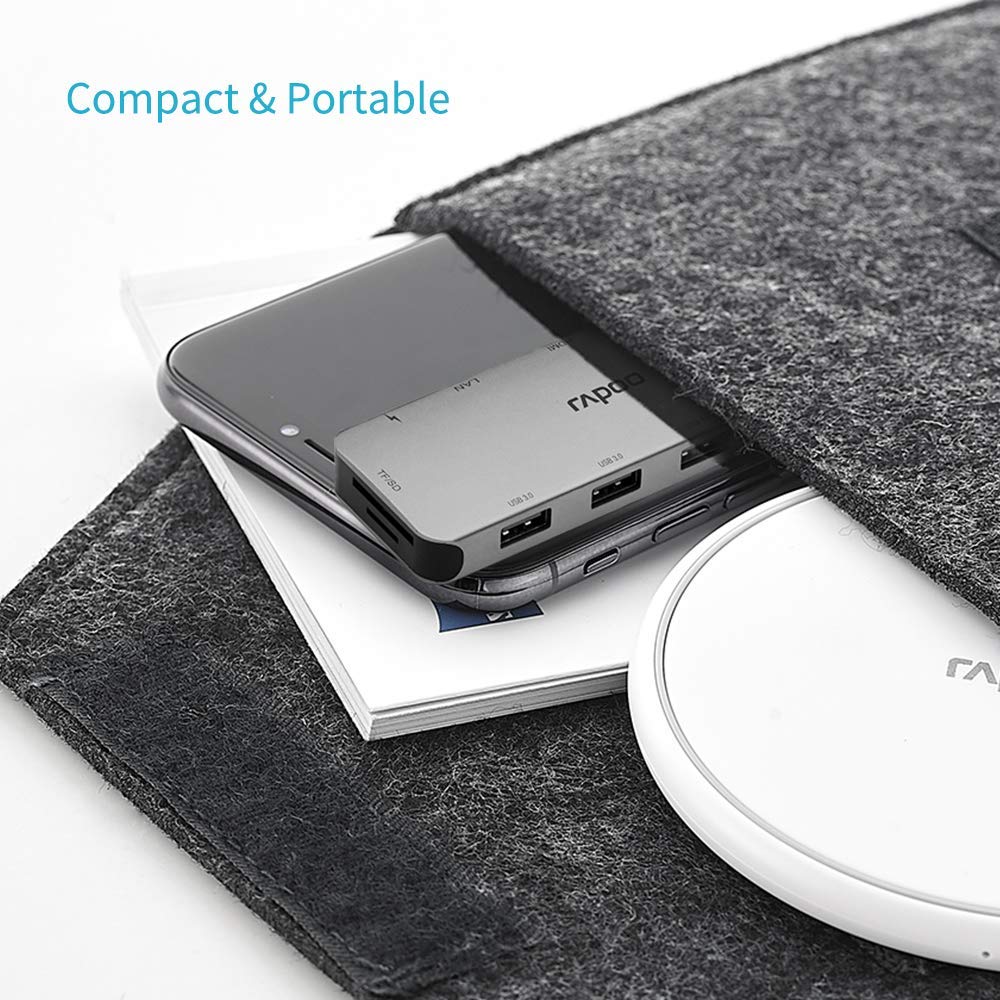 Thiết kế nhỏ gọn, cứng cáp Bộ chia USB Type-C Rapoo 10-in-1 XD200 được trang bị vỏ bằng nhôm nguyên khối, và kích thước cực kỳ nhỏ gọn giúp bạn dễ dàng mang theo bên mình. |