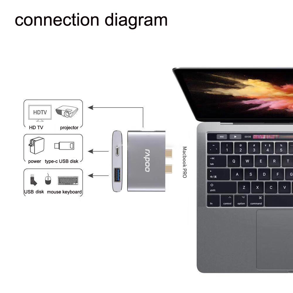 Hỗ trợ sạc (Power Delivery) Bộ chia USB Type-C Rapoo 3-in-1 XD20M hỗ trợ tính năng Power Dilevery, giúp bạn có thể vừa sử dụng vừa sạc cho Macbook hoặc laptop sử dụng sạc qua cổng USB Type-C. |