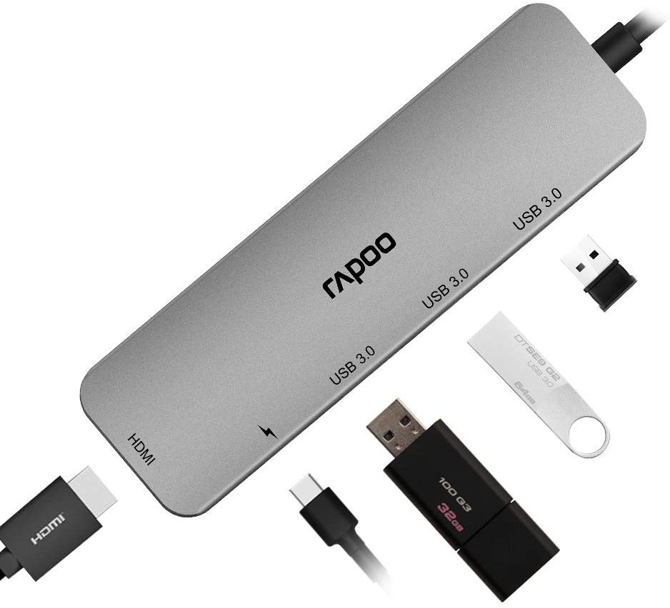 Bộ chia USB Type-C Rapoo 5-in-1 XD100 Dễ dàng mở rộng kết nối Với công nghệ ngày càng phát triển thì các dòng Macbook hoặc Laptop bắt đầu mỏng dần đi và các cổng kết nối đều được thu gọn và thay thế với chuẩn USB Type-C mới nhất và siêu nhỏ. Điều đó sẽ làm cho máy tính của bạn trông gọn gàng hơn nhưng sẽ cực kỳ khó sử dụng vì thiếu cổng kết nối. Thì điều bạn cần phải quan tâm đó là một thiết bị có thể giúp bạn mở rộng các cổng kết nối để sử dụng chuột, USB hoặc bất kì một thiết bị nào đó có giao tiếp USB. Xin giới thiệu đến bạn một sản phẩm có thể giúp bạn giải quyết vấn đề đò: Bộ chia USB Type-C Rapoo 5-in-1 XD100, với khả năng mở rộng tối đa 3 cổng USB Type-A, HDMI và Type-C cực kỳ tiện lợi. |