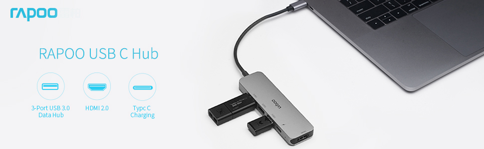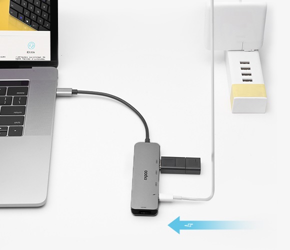 Hỗ trợ sạc (Power Delivery) Bộ chia USB Type-C Rapoo 5-in-1 XD100 hỗ trợ tính năng Power Dilevery, giúp bạn có thể vừa sử dụng vừa sạc cho Macbook hoặc laptop sử dụng sạc qua cổng USB Type-C. |