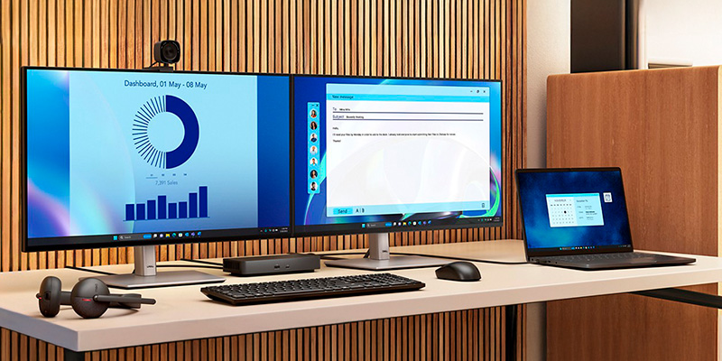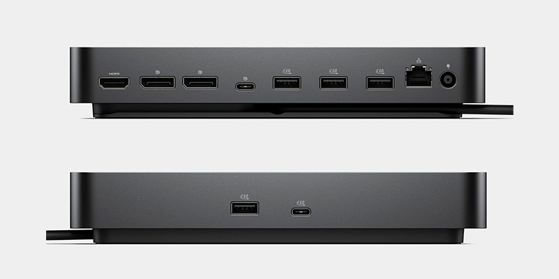 Dell Pro Dock WD25 hỗ trợ 4 màn hình hiển thị đồng thời nhờ hệ thống cổng video cao cấp gồm 2 x DisplayPort 1.4, 1 x HDMI 2.1 và 1 x USB-C DisplayPort 1.4 (Multi-function). Ở cấu hình cao nhất, dock có thể xuất hình 4 x WQHD (3440 x 1440) @ 60Hz, 2 x 5K (5120 x 2160) @ 60Hz, hoặc thậm chí 1 màn hình 6K (6144 x 3456) @ 60Hz khi sử dụng Display Stream Compression (DSC). Khả năng hỗ trợ đa màn hình giúp người dùng dễ dàng làm việc đa nhiệm, chỉnh sửa đồ họa hay trình chiếu chuyên nghiệp với chất lượng hình ảnh sắc nét, màu sắc trung thực.