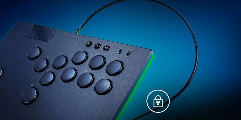Bộ điều khiển Arcade Razer Kitsune tích hợp sẵn khóa cố định dây cáp và công tắc khóa vô hiệu hóa các nút không cần thiết, loại bỏ các thao tác không cần thiết và sự mất kết nối có thể vô tình xảy ra.