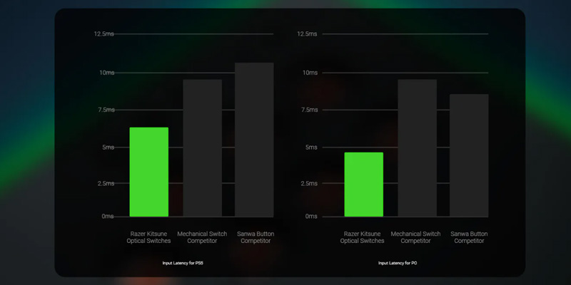 Với chiều cao phím ngắn hơn cho tốc độ thực thi cao hơn, độ phản hồi tốt hơn, các công tắc mượt mà, nhanh như chớp của Bộ điều khiển Arcade Razer Kitsune mang đến tốc độ và độ chính xác mà bạn cần để tối đa hóa các thao tác khi chơi game.