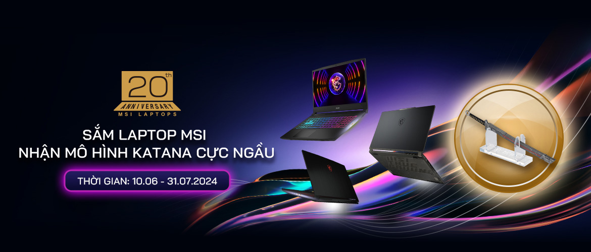 Khách hàng mua các mẫu Laptop Gaming MSI sử dụng card đồ họa NVIDIA GeForce từ RTX 4050 trở lên sẽ nhận được một Mô hình Katana.