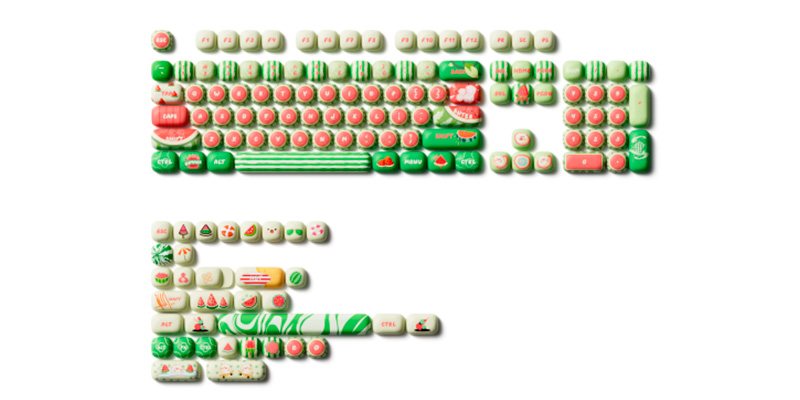 Bộ Keycap Akko Watermelon PBT Dyesub MOG Profile sử dụng MOG Profile – một thiết kế mới với hình dáng giống nấm, các cạnh bo tròn tinh tế, mang lại cảm giác gõ phím mềm mại và thoải mái hơn. Thiết kế này không chỉ nâng cao trải nghiệm gõ mà còn tạo điểm nhấn thẩm mỹ độc đáo cho bàn phím của bạn.
