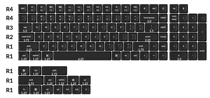 Full set Các Bộ Keycap Keychron White PBT Double-shot LSA Low Profile có tất cả các keycap bạn cần cho bàn phím Keychron cấu hình thấp ANSI bố trí K1, K1 SE, K3, K5, K5 SE và K7 |