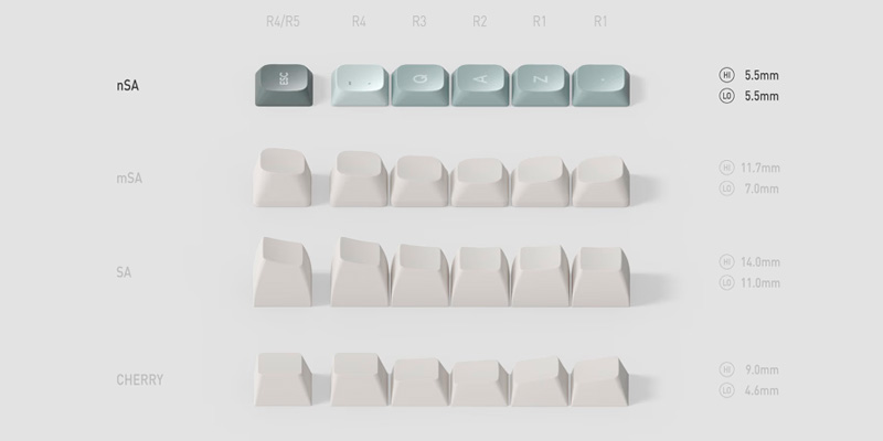 Bộ keycap này sử dụng profile nSA độc quyền, kết hợp giữa sự thoải mái của SA và sự gọn gàng của DSA, mang lại trải nghiệm gõ phím tối ưu. Với độ cong nhẹ nhàng và chiều cao hợp lý, keycap giúp người dùng thao tác chính xác và thoải mái ngay cả khi sử dụng trong thời gian dài. Đây là sự lựa chọn lý tưởng cho cả công việc và giải trí.