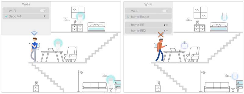 Kết nối liền mạch Deco M4 phối hợp với nhau để tạo thành một mạng thống nhất. Điện thoại hoặc máy tính bảng của bạn sẽ tự động kết nối nhanh nhất khi bạn di chuyển trong nhà, tạo ra trải nghiệm Wi-Fi thực sự liền mạch. |