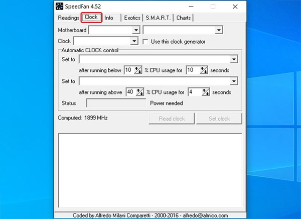 Bước 2: Bạn chọn tiếp vào tab Clock, tại đây bạn có thể chỉnh sửa bus máy tính (FSB). Tuy nhiên, cần lưu ý rằng việc thay đổi FSB sai cách có thể ảnh hưởng đến tốc độ của máy tính.